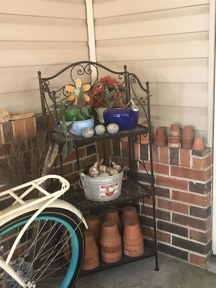 Front Porch Potting Shelf Posted on July 8, 2017 by deannagreensandgardenart Author: deannagreensandgardenart Personal chef and greenhouse owner using sustainable, organic methods for growing herbs, flowers, and perennial plants. View All Posts