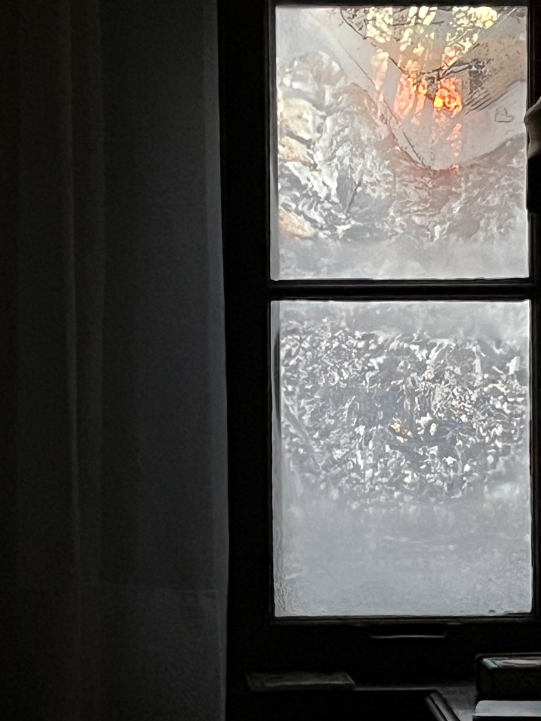 The first thought to the word “present” is to be “present moment”. That could fall into every aspect of my life, but I feel it most pertains to my spiritual life. Prayer, talking to God and being present with God throughout my day, every day, every moment. A relationship is a 2-way street, so listening to God every moment of every day throughout my day most importantly. ”Present day” is an extension of “present moment”. It is living each day like it is a present. “Yesterday is history. Tomorrow is a mystery. Today is a gift. That’s why we call it ‘The Present’,” a saying attributed to Alice Morse Earle, Eleanor Roosevelt, Bil Keane, and A.A. Milne. Treat each day as a gift. Giving thanks to God for this day He has gifted me with. Like the awesome sunrise He gave me this morning as I sat on the couch looking out the front window covered with ice and snow.