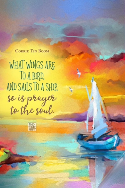 Where is life going? It is a question I ask often. I am a planner, but I must rest in God’s plans, not my own. Faith. Trust. In God, not myself or others. While I have launched into this new season, I spent part of July in quiet, just not doing anything some days. In these contemplative hours, I considered where I have been, and then where life is going for my loved ones and I. I cannot dwell here very long as I begin to think things too much, try to figure out God. I simply need to pray, trust that He is caring for me and my loved ones in every minute of our days. “What wings are to a bird, and sails to a ship, so is prayer to the soul,” Corrie Ten Boom has said. Soul, fly and sail through this busy month of August, soar above and through all the unknown and unanswered details with God’s guidance. Father God be with me.